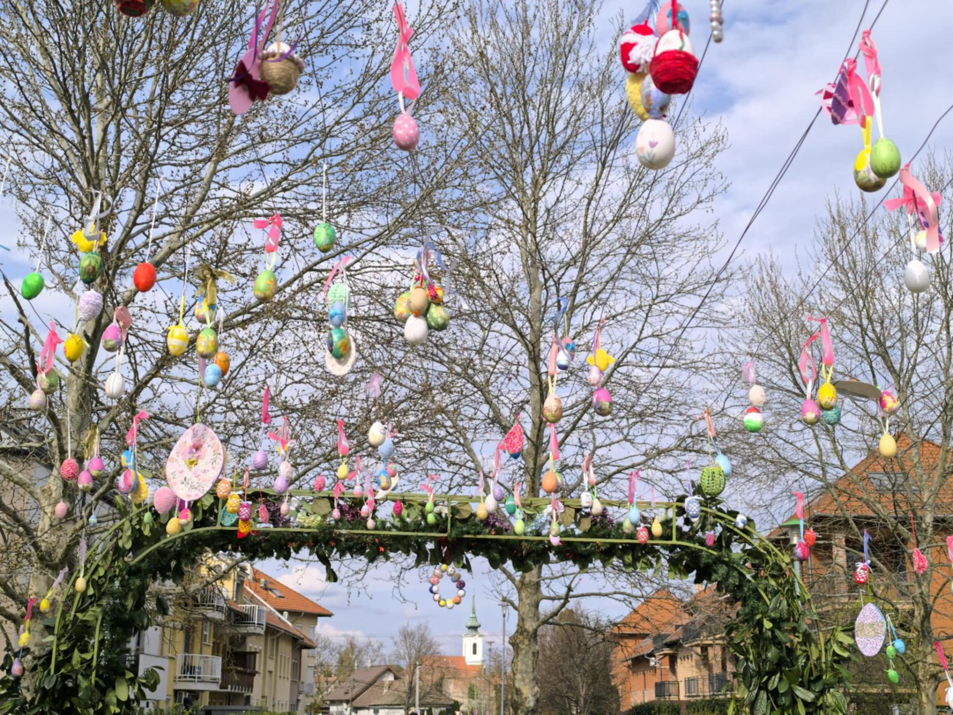 Pomázi húsvét: ünnepi dekorációk a HÉV-állomásnál és a Szent István parkban
