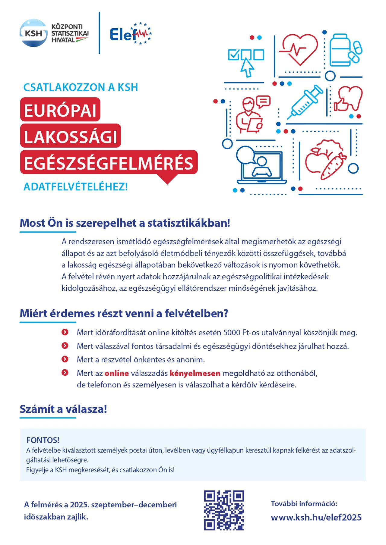 Csatlakozzon a KSH Európai Lakossági Egészségfelmérés adatfelvételéhez!Most Ön is szerepelhet a statisztikában!